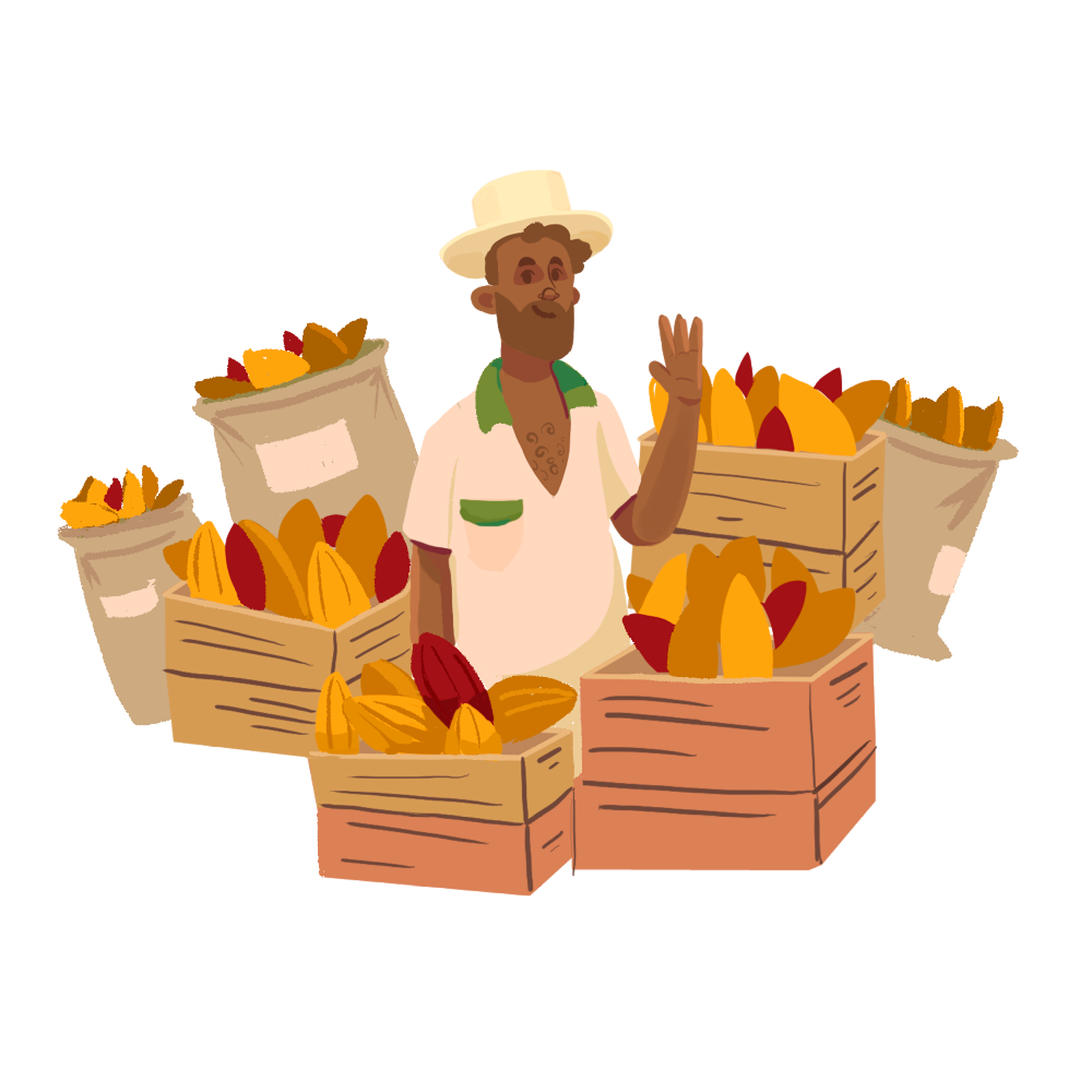 Construimos un mapa completo del recorrido del cacao: desde el cultivo hasta la exportación. Cada etapa fue representada con colores cálidos y vibrantes para reforzar la percepción positiva asociada a la marca.