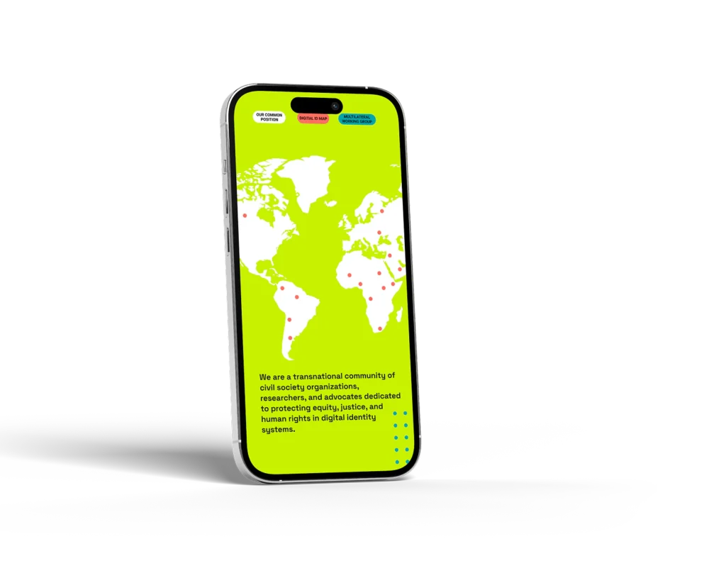 El proyecto arrancó con una decisión clave: el color. Elegimos una tensión visual entre colores ácidos y vibrantes y otros neutros y estables.  Luego profundizamos en los derechos digitales y sus desafíos, lo que nos llevó a mezclar el escáner óptico con la idea de comunidad cómo símbolo. Finalmente incorporamos una tipografía futurista y creamos una familia de íconos estilo stencil para reforzar el carácter de la marca.